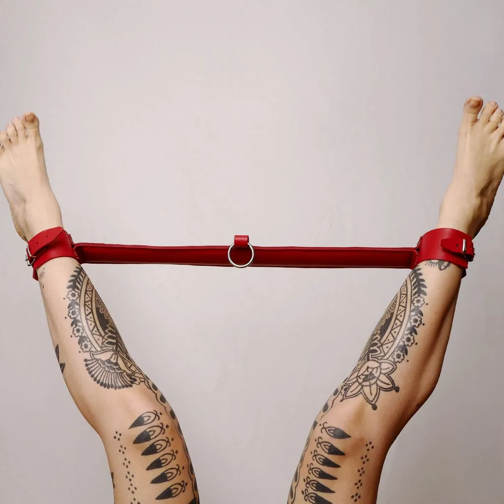Lorsqu’on pense aux accessoires de contrainte, on imagine souvent des menottes, une laisse, etc. Cette barre d’écartement en cuir rouge est idéale pour contraindre. Le ou la partenaire est immobilisé.e. La partie qui s’attache aux chevilles possède plusieurs crans pour s’ajuster aux différentes tailles de tours de chevilles. Cet accessoire est mixte et vous accompagne lors de vos jeux de soumission.