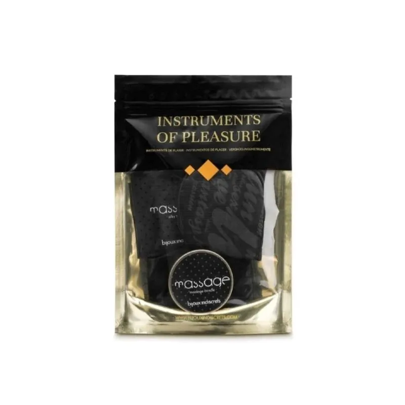 Liez les poignets avec ces liens en satin, bandez les yeux avec ce masque satiné et laissez un massage sensuel attiser le désir.