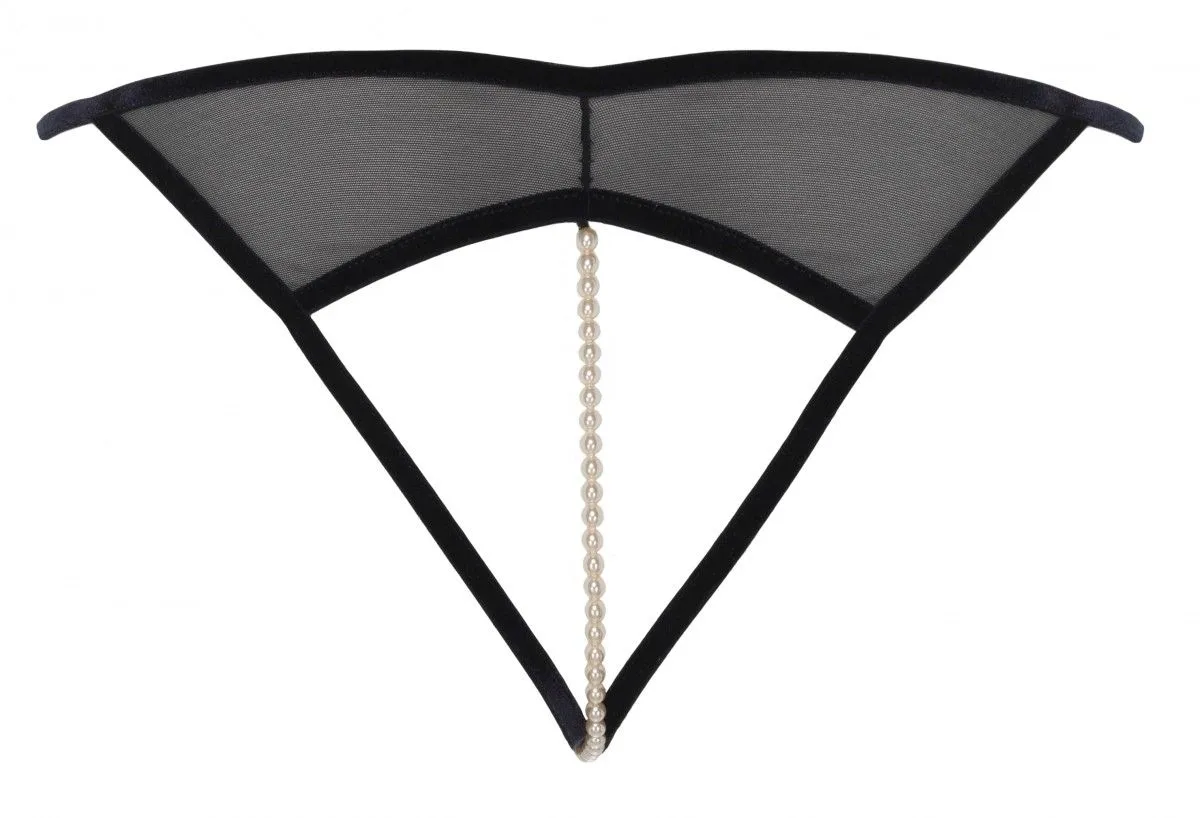 Deux élastiques en velours forment le string et entourent la bande de perle sur les fesses.