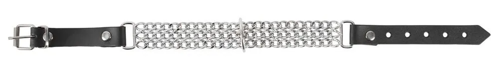 Ce choker en acier et croûte de cuir est ajustable, et bien-sûr, complètement mixte !