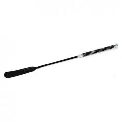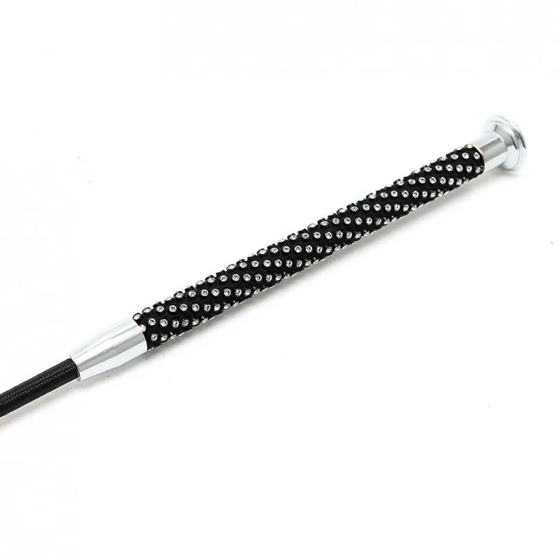 Cette cravache courte est assez rigide, et son manche est entièrement décoré de strass.