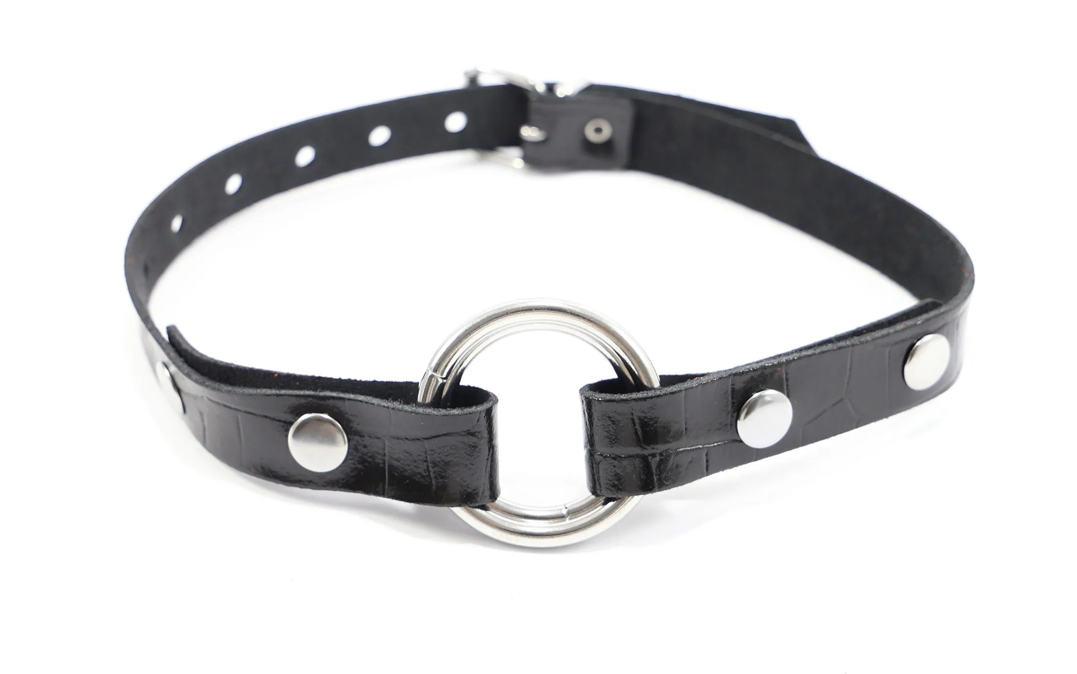 Bâillon réglable en cuir noir avec deux anneaux en acier, de largeurs différentes, pour convenir à tous vos jeux.