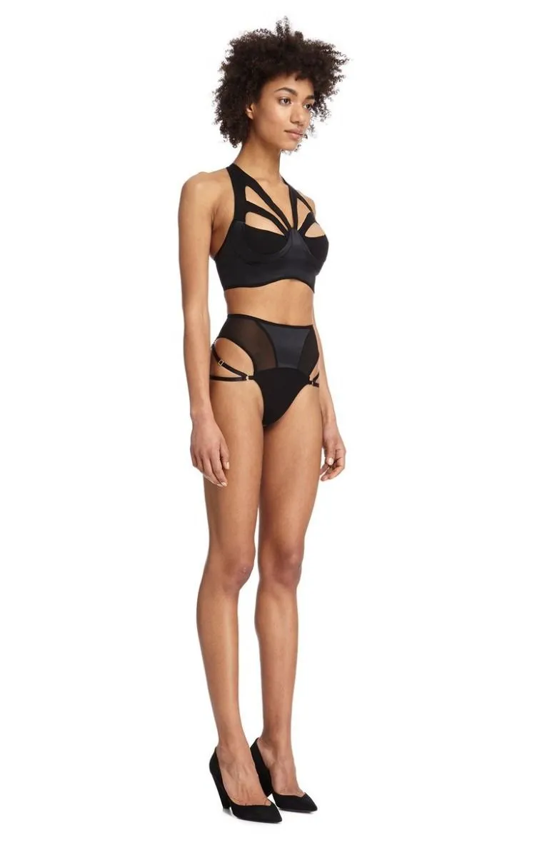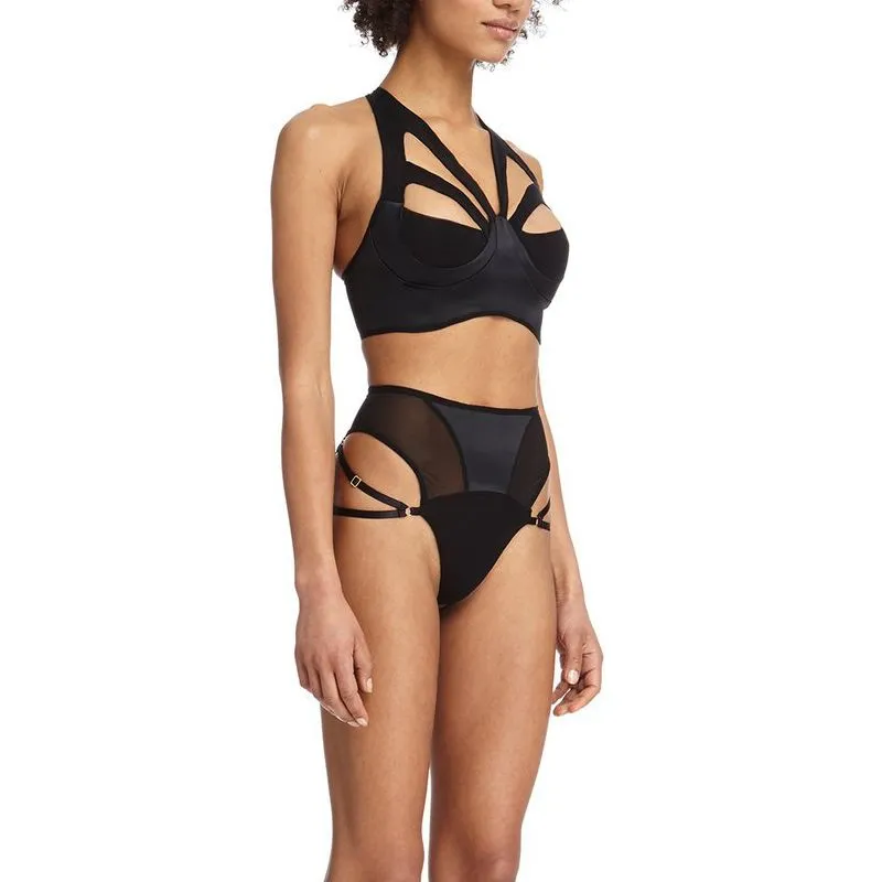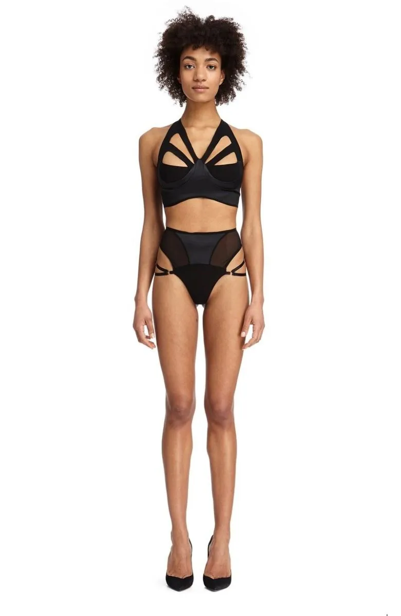 String taille haute avec voile et lanières élastiques réglables sur les hanches.