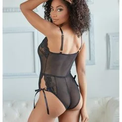 Body Culotte En Résille Et Dentelle Ouvert à L’entrejambe