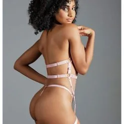 Body Harnais Effet Porte-jarretelles En Lanières Satinées Roses