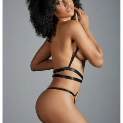 Body Harnais En Lanières Satinées Noires – Izabel