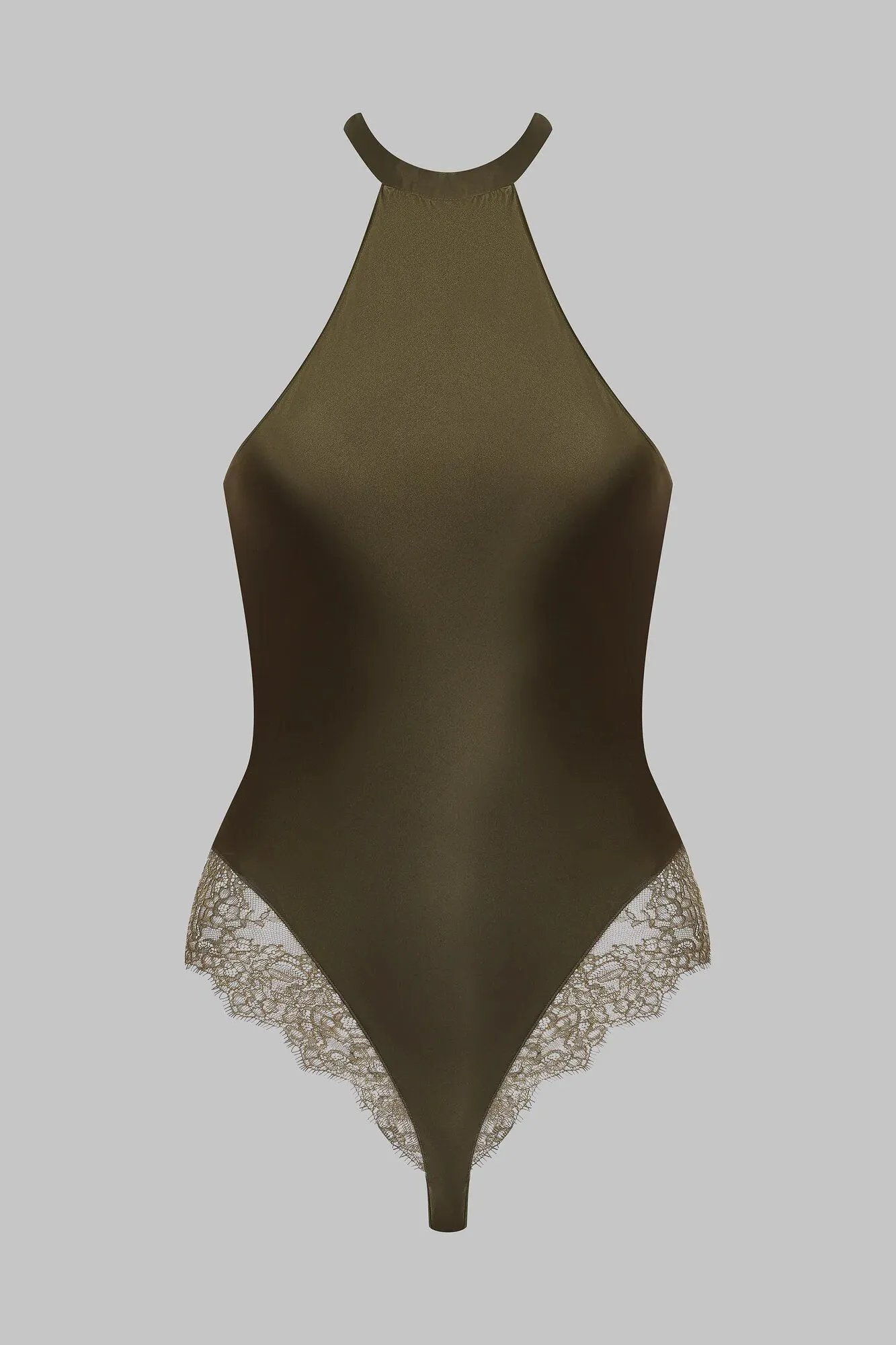 Avec sa coupe échancrée et son encolure américaine, ce body souligne les courbes du corps tout en finesse.