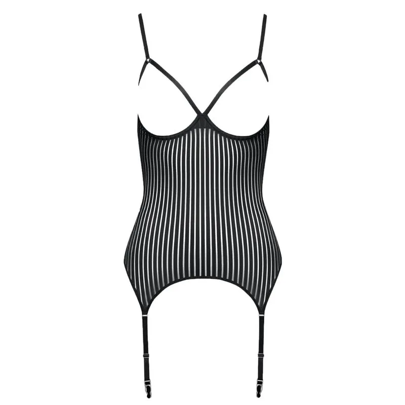Portez la combinaison seins nus avec une paire de bas, grâce aux 4 porte-jarretelles réglables intégrés au sous-vêtement.