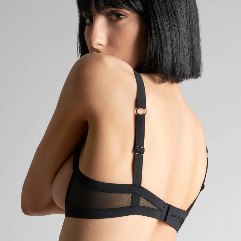 Un empiècement en tulle transparent décore l’entre-bonnet et des bretelles réglables garantissent un bon ajustement.