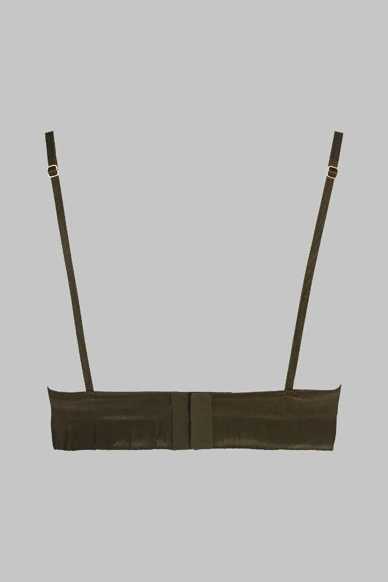 Composé de soie naturelle et d’une dentelle fine au motif floral, ce soutien-gorge à la coupe triangle souligne la poitrine. Sa dentelle à cils orne son décolleté plongeant. Une large bande de soie offre un effet bustier et apporte soutien et confort à la poitrine. Ses bretelles fines ainsi que son tour de dos sont réglables pour s’adapter au mieux à chaque morphologie. Sa coupe triangle épouse le sein et met en valeur son galbe. Tout en transparence, ce soutien-gorge maintient la poitrine tout en la dévoilant.
