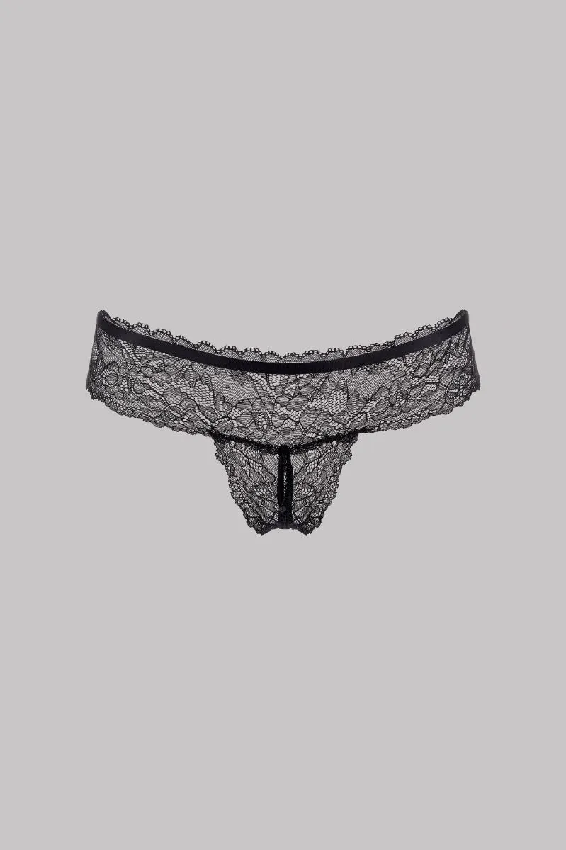 Couvrant votre intimitĂ© de dentelle, ce string tanga Le Petit Secret raffinĂ© ose l’ouverture impertinente sur l’arrière.