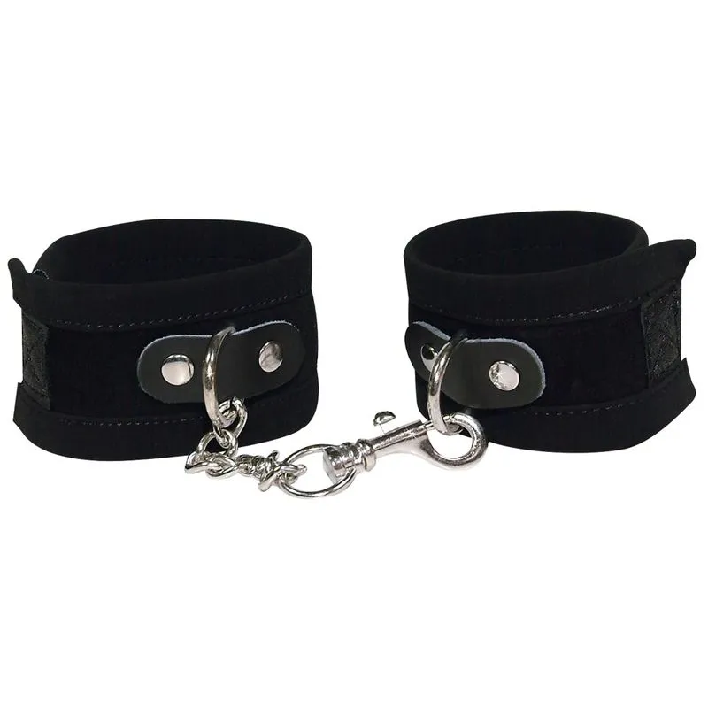 Les menottes contraignent les poignets, celles-ci sont reliées par une chaîne assez longue pour vous permettre de varier les combinaisons.