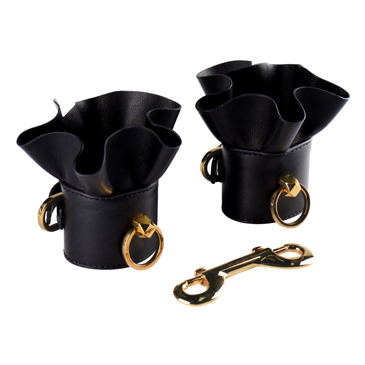 Les bracelets en cuir italien sont surmontés d’un volant en cuir qui apporte une touche féminine et sensuelle.