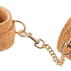 Bi-matière, ces menottes habillent le poignet d’un bracelet en liège dont l’intérieur est fourré d’une douce peluche. Réglables en largeur, elles s’adaptent à toutes les tailles de mains. Leurs attaches sont en acier doré, leur donnant un élégant effet bijou. Celle-ci est détachable, vous permettant de varier les jeux et les scénarios.