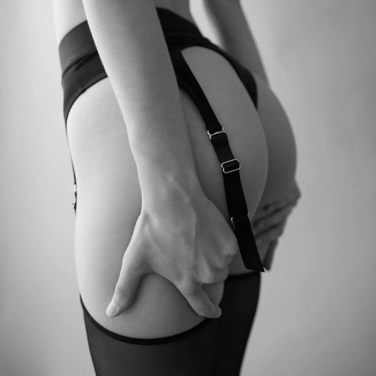 Ce harnais ne se contente pas d’être pratique, et c’est ce qu’on aime ! Il est à mi-chemin entre la lingerie et le sextoys.
